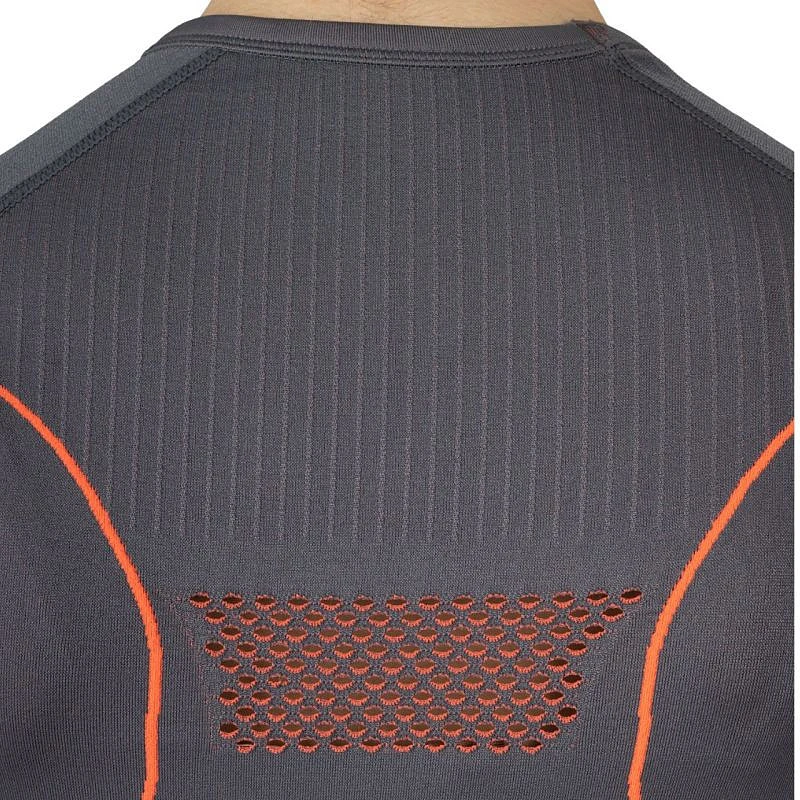 - Korálové detaily podtrhují sportovní styl a přiléhavý střih šedého termoprádla, které se hodí jako základní vrstva pod lyžařskou kombinézu i jako samostatný fitness outfit.