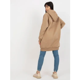 Tmavobéžová dlhá základná mikina s kapucňou.