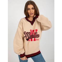 Béžová dámska mikina s nápismi a výstrihom do V.