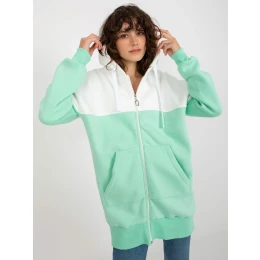 Ecru-mint mikina dlhá základná s kapucňou.