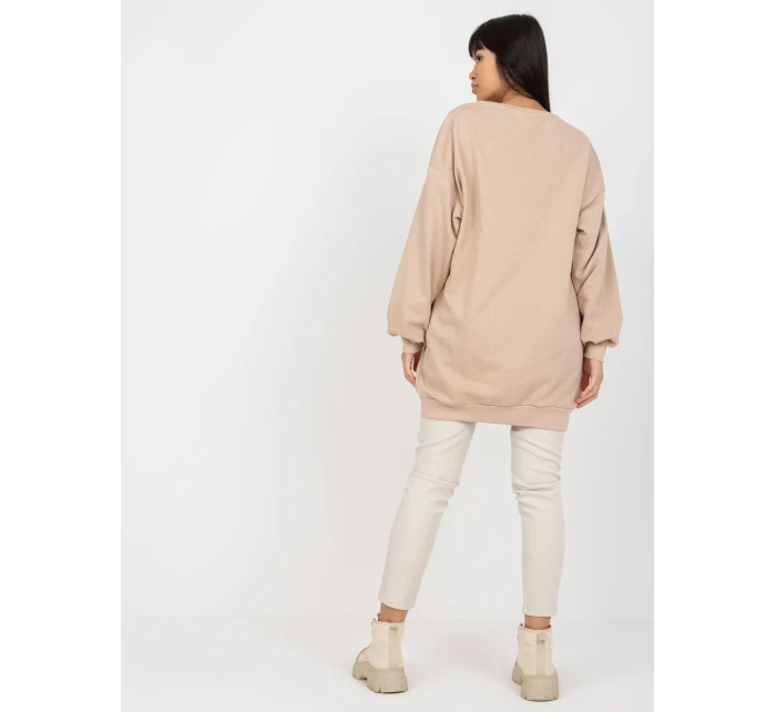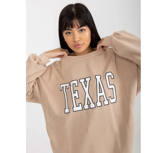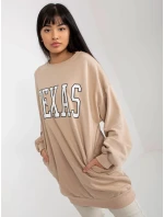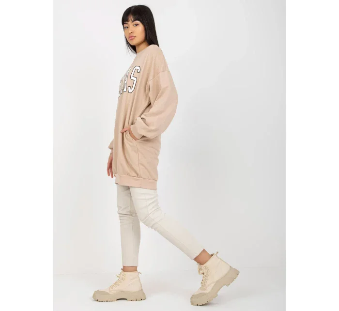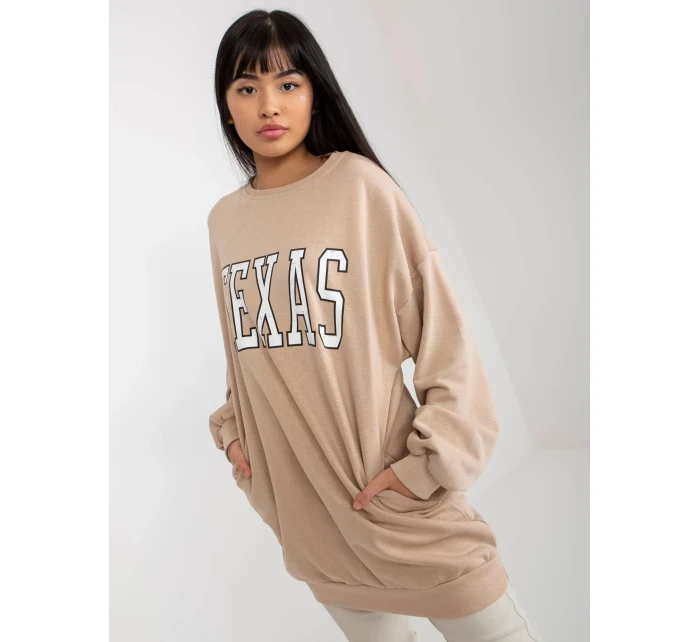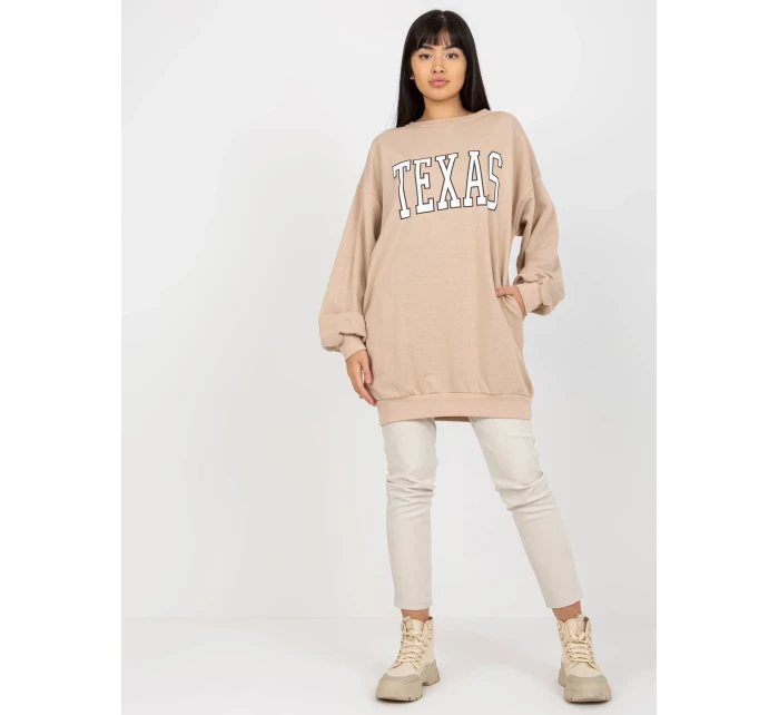Béžová mikina s potlačou a okrúhlym výstrihom.