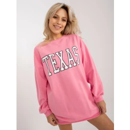Ružová dlhá voľná mikina s nápismi a vreckami.