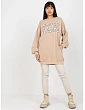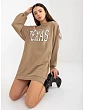 Tmavobéžová dlhá mikina s potlačou a vreckami.