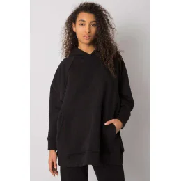 Mikina s dlhými rukávmi a kapucňou a predĺženým strihom. Klokanie vrecko na prednej strane.