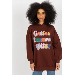 Dámska mikina rovného strihu s dlhými rukávmi a kapucňou. Vrecká na bokoch. Ozdobný nápis na prednej strane.