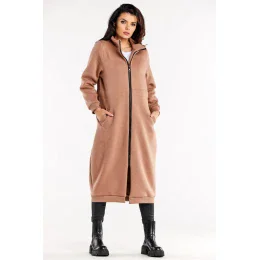 Dlhá mikina na zips s dlhými rukávmi a vysokým golierom. Mikina má nakladané vrecká. Mikina má v páse tunelík so sťahovacou šnúrkou na chrbte.