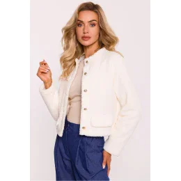 Dámsky sveter s kapucňou z plyšového materiálu, s krátkym a jednoduchým strihom, ideálny na každodenný styling. Vpredu sa zapína na ozdobné zlaté gombíky, ktoré dodávajú eleganciu. Ozdobné vrecká na prednej strane dodávajú svetru jedinečný charakter. Kompletne podšitý pre pohodlné nosenie. Sveter bol navrhnutý a vyrobený v Poľsku a spája štýl a pohodlie.