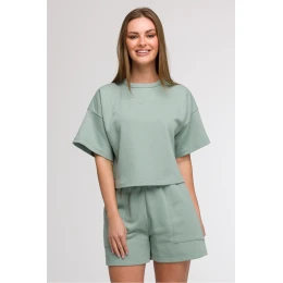 Táto dámska blúzka voľného strihu je ideálnou voľbou na letné každodenné štylizácie. Jej jednoduchý, boxerský strih a dĺžka do pása sa skvele kombinuje so šortkami, sukňami alebo nohavicami s vysokým pásom. Krátke, široké rukávy a absencia podšívky zabezpečujú priedušnosť a pohodlie pri nosení počas teplejších dní. Blúzka má klasický okrúhly výstrih okolo krku, ktorý jej dodáva minimalistický charakter. Je navrhnutá a ušitá v Poľsku s dôrazom na detail a predstavuje spojenie pohodlia a štýlu. Je skvelým základom pre dovolenkové a mestské outfity.