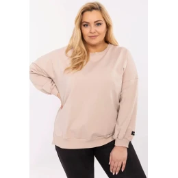 Táto dámska mikina plus size v ležérnom štýle je skvelou voľbou na každodenné nosenie pre ženy, ktoré oceňujú pohodlie a módny minimalizmus. Je vyrobená z mäkkej, na dotyk príjemnej bavlny s prídavkom elastanu, vďaka čomu poskytuje pohodlné nosenie a voľnosť pohybu. Model štandardnej dĺžky má klasický okrúhly výstrih a dlhé rukávy. Hladký materiál jej dodáva univerzálny charakter, ktorý možno ľahko kombinovať s rôznymi štýlmi, od džínsov až po legíny. Mikina nemá žiadne zapínanie, vďaka čomu sa mimoriadne pohodlne oblieka. Ďalšie akcenty v podobe nášiviek na chrbte a rukávoch jemne podčiarkujú jej moderný, ležérny štýl. Ideálna na každodenné nosenie do práce, na prechádzku alebo relax doma.