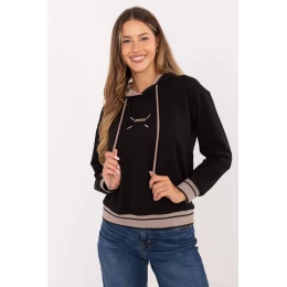 Dámska mikina s ležérnym charakterom, vyrobená z prevažujúcej zmesi bavlny a elastanu, ktorá zaručuje pohodlie a voľnosť pohybu. Model štandardnej dĺžky má dlhé rukávy s kontrastnými manžetami, ktoré sa opakujú na spodnom okraji, čo dodáva mikine moderný vzhľad. Vybavená je praktickou kapucňou so sťahovacími šnúrkami, ktorá je ideálna na každodenné príležitosti. Hladký povrch materiálu oživuje výšivka na prednej strane, ktorá celku dodáva štýlový akcent. Mikina nemá zapínanie, čo zdôrazňuje jej uvoľnený a pohodlný charakter.