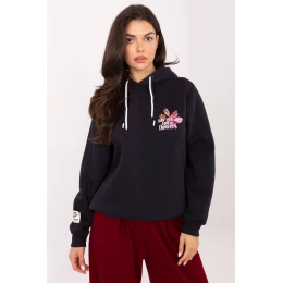 Dámska mikina v ležérnom štýle, ideálna na každý deň. Je vyrobená zo zmesi bavlny a polyesteru a poskytuje pohodlie a príjemné teplo. Model so štandardnou dĺžkou a dlhými rukávmi má kapucňu so šnúrkami na nastavenie. Na pravom rukáve je výrazná nášivka a potlač na prednej a zadnej strane, menšia na prednej strane a väčšia na zadnej strane. Praktické vrecká vložené v bočných švoch umožňujú pohodlne uložiť drobnosti.