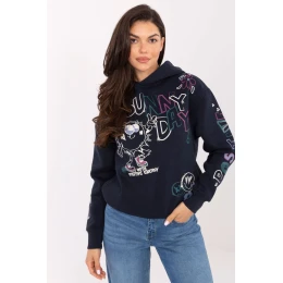 Dámska mikina v ležérnom štýle, ideálna na každodenné príležitosti. Vyrobená zo zmesi bavlny a polyesteru poskytuje pohodlie a príjemné teplo. Štandardná dĺžka s dlhými rukávmi a praktickými vreckami vsadenými do bočných švov. Potlač dodáva mikine charakter spolu s nápismi pokrývajúcimi celú jej plochu s výnimkou kapucne, na ktorej sa nachádzajú decentné nápisy.