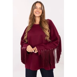 Elegantný dámsky sveter s ležérnym charakterom, ideálny na každodenné príležitosti. Je vyrobený z príjemnej zmesi viskózy a polyesteru, ktorá poskytuje pohodlie pri nosení a odolnosť materiálu. Hladký vzor mu dodáva univerzálny charakter, vďaka čomu ho možno ľahko zladiť s rôznymi štylizáciami. Model má štandardnú dĺžku a klasický okrúhly výstrih. Dlhé rukávy sú zdobené franglais a nitmi, čo celému kúsku dodáva módny, mierne rockový akcent. Franglais sa nachádzajú aj na zadnej strane, čím do projektu vnášajú originálny a dynamický detail. Je to ponuka pre ženy, ktoré rady kombinujú pohodlie s osobitým štýlom skvelým na každý deň, k džínsom, legínam alebo sukniam.
