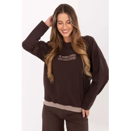Táto moderná dámska mikina v ležérnom štýle je dokonalou kombináciou pohodlia a módneho dizajnu. Je vyrobená z mäkkej a elastickej zmesi bavlny a elastanu a poskytuje pohodlie počas celého dňa. Model so štandardnou dĺžkou a dlhými rukávmi má okrúhly výstrih a je bez zapínania, čo zdôrazňuje jeho voľný strih. Prednú časť mikiny zdobí vyšívaný nápis, ktorý jej dodáva originálny vzhľad, a kontrastná vsadka v spodnej časti je módnym detailom, ktorý tento model odlišuje od klasických strihov. Je to skvelý dizajn pre ženy, ktoré pri každodennom stylingu ocenia pohodlie, štýl a jemné ozdoby.