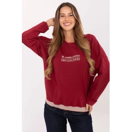 Táto moderná dámska mikina v ležérnom štýle je dokonalou kombináciou pohodlia a módneho dizajnu. Je vyrobená z mäkkej a elastickej zmesi bavlny a elastanu a poskytuje celodenné pohodlie. Model so štandardnou dĺžkou a dlhými rukávmi má okrúhly výstrih a je bez zapínania, čo zdôrazňuje jeho uvoľnený charakter. Prednú časť mikiny zdobia vyšívané nápisy, ktoré jej dodávajú originálny vzhľad, a kontrastná vsadka v spodnej časti je módnym detailom, ktorý tento model odlišuje od klasických strihov. Je to skvelý dizajn pre ženy, ktoré vo svojom každodennom oblečení ocenia pohodlie, štýl a jemné ozdoby.