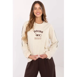 Dámska oversized mikina je štýlový dizajn pre ženy, ktoré si cenia pohodlie a módny mestský vzhľad. Je vyrobená z mäkkej zmesi bavlny a polyesteru, je jemná na dotyk, odolná a ideálna na každodenné nosenie. Voľný oversized strih poskytuje voľnosť pohybu a moderný charakter. Model má na prednej strane vyšitý nápis, ktorý mu dodáva originalitu, a priliehavé pruhy na rukávoch, ktoré mu dodávajú športový vzhľad. Mikina má okrúhly výstrih, dlhé rukávy a štandardnú dĺžku, vďaka čomu sa skvele hodí k džínsom aj legínam. Absencia zapínania zdôrazňuje jej uvoľnený štýl a pohodlný strih.
