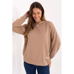 Elegantná dámska mikina s ležérnym charakterom, ideálna na každý deň. Vyrobená z príjemnej zmesi viskózy, polyesteru a elastanu poskytuje pohodlie pri nosení, pružnosť a odolnosť. Model so štandardnou dĺžkou, dlhým rukávom a kapucňou je klasikou v modernom dizajne. Vďaka hladkému materiálu je mikina univerzálna a ľahko kombinovateľná, zatiaľ čo ozdobné nášivky na leme a kapucni jej dodávajú originálny, módny akcent. Konštrukcia bez gombíkov zaručuje voľnosť a pohodlie pri nosení. Ideálna s nohavicami, legínami alebo teplákmi, skvelý návrh na každodenné, ležérne štýly.