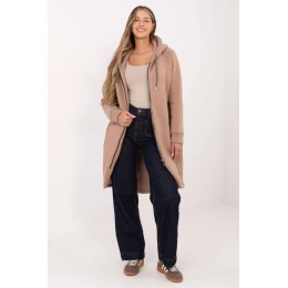 Elegantní a funkční dámská mikina vyrobena z příjemného na dotek materiálu, ve kterém dominuje kvalitní bavlna s přídavkem elastanu. Poskytuje pohodlí, měkkost a ideální přizpůsobení postavě. Model má dlouhý střih, díky kterému je skvělý jak na chladnější dny, tak jako doplněk každodenních outfitů. Mikina je zakončena spodní částí v charakteristickém polokruhovém tvaru a zadní část je o něco delší než přední, což jí dodává moderní a ženský vzhled. Je vybavena praktickou kapucí a dlouhým rukávem, který zaručuje termální pohodlí. Zapíná se na zip po celé délce a má také kapsy se zipem, ideální k uložení drobností. Další vrstva izolace zajišťuje, že mikina skvěle chrání před chladem, zachovávajíc zároveň lehký a estetický střih.