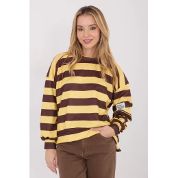 Stylová dámská mikina s casual charakterem, ideální na každý den. Vyznačuje se módním pruhovaným vzorem, který jí dodává moderní a univerzální vzhled. Vyrobená z příjemné viskózy s přídavkem elastanu, díky čemuž je měkká, elastická a pohodlná na nošení po celý den. Model standardní délky s dlouhým rukávem a kulatým výstřihem, který klasicky padá na postavu. Mikina nemá zapínání, co zdůrazňuje její volný styl a pohodlí nošení. Další výhodou je dekorativní nášivka na rukávu, která dodává celku originální charakter. Skvěle se hodí do každodenních stylizací, jak s džínami, tak s látkovými kalhotami nebo legíny.