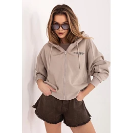 Táto elegantná dámska mikina s ležérnym charakterom je ideálnou voľbou na každý deň. Je vyrobená z kvalitnej zmesi bavlny a polyesteru a vďaka dodatočnému zatepleniu poskytuje pohodlie, odolnosť a príjemné teplo. Krátky strih dodáva mikine moderný a štýlový vzhľad, zatiaľ čo dlhé rukávy a kapucňa zaručujú veľké pohodlie počas chladnejších dní. Zapínanie na zips zvyšuje funkčnosť a umožňuje pohodlné obliekanie a reguláciu teploty. Jemným, ale štýlovým akcentom je nápis umiestnený na prednej ľavej strane na úrovni hrudníka, ktorý celku dodáva charakter a zapadá do súčasných trendov. Ide o skvelý dizajn na každodenné oblečenie, ktorý sa dokonale hodí k džínsom, legínam alebo teplákom, čím sa vytvárajú pohodlné a štýlové kombinácie.