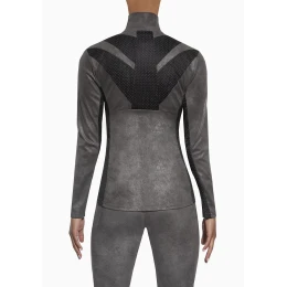 s vysokým stojáčkem, se zapínáním na zip. Flexibilní, prodyšný a rychleschnoucí materiál. Rozdílný materiál vytváří na zádech velice zajímavý geometrický prvek.