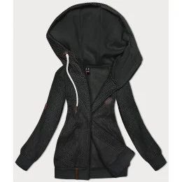 Otvorená mikina s kapucňou a malými srdiečkami v grafitovej farbe (2316)