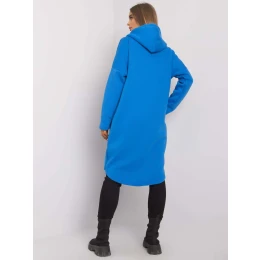 Modrá mikina na zips s kapucňou.