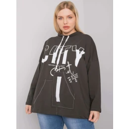 Tmavá khaki mikina plus size s potlačou a vreckami.