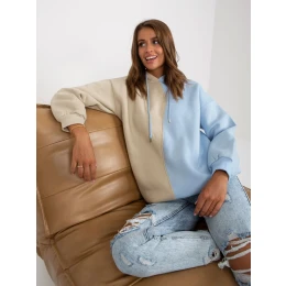Béžovo-modrá dámska základná mikina s kapucňou od značky RUE PARIS.