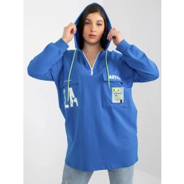 Tmavomodrá dlhšia plus size mikina s kapucňou s nápisom .