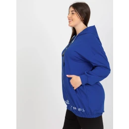 Tmavomodrá mikina s kapucňou plus size s nápisom .