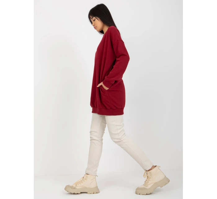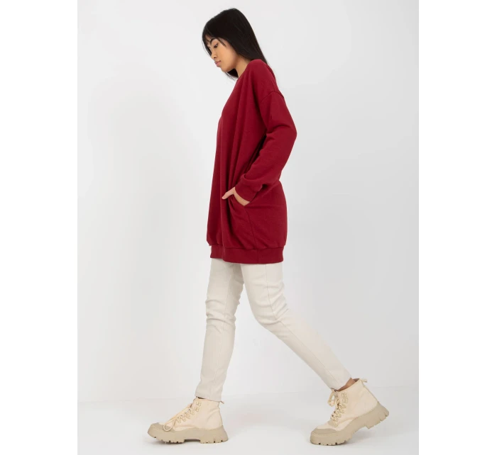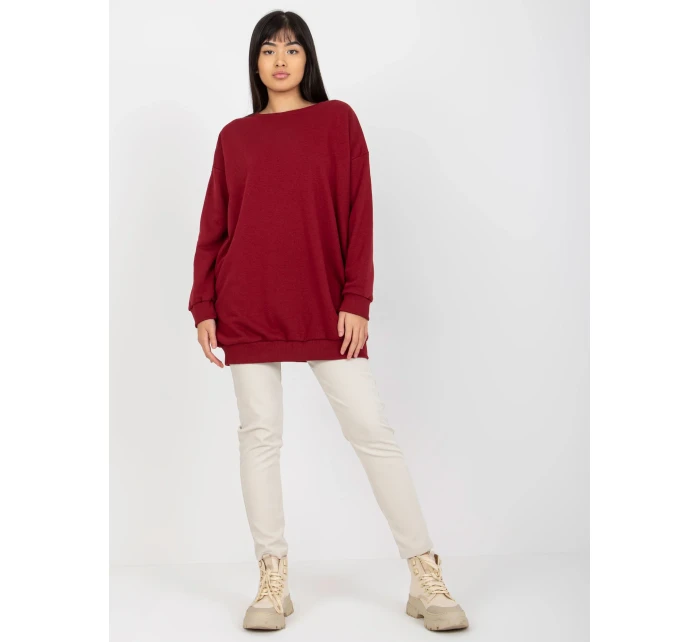 Dlhá základná oversize mikina Bordeaux.