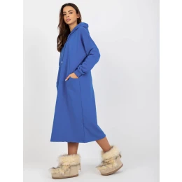 Tmavomodré midi športové základné šaty s kapucňou.