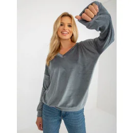 Brudnoniebieska welurowa bluza bez kaptura z dekoltem V .