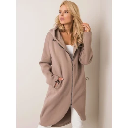 RUE PARIS Tmavě béžová dlouhá mikina s kapucí.