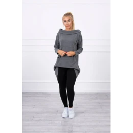 Mikina s kapucí s dlouhými zády v grafitové barvě