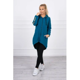 Predstavujeme vám pohodlnú dlhú mikinu s kapucňou. Mikina má zapínanie na zips a ďalší zips na chrbte. Vrecká na bokoch a dve ozdoby na zadnej strane. Mikina má našité stuhy s nápisom fashion. Mikina je vyrobená z vysoko kvalitného materiálu. Veľkosť je univerzálna a vyhovuje dámam, ktoré nosia veľkosť S, M alebo L.