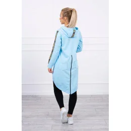 Predstavujeme vám pohodlnú dlhú mikinu s kapucňou. Mikina má zapínanie na zips a ďalší zips na chrbte. Vrecká na bokoch a dve ozdoby na zadnej strane. Mikina má našité stuhy s nápisom fashion. Mikina je vyrobená z vysoko kvalitného materiálu. Veľkosť je univerzálna a vyhovuje dámam, ktoré nosia veľkosť S, M alebo L.
