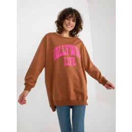 Svetlohnedá a ružová dlhá mikina nadrozmernej veľkosti s nápisom .