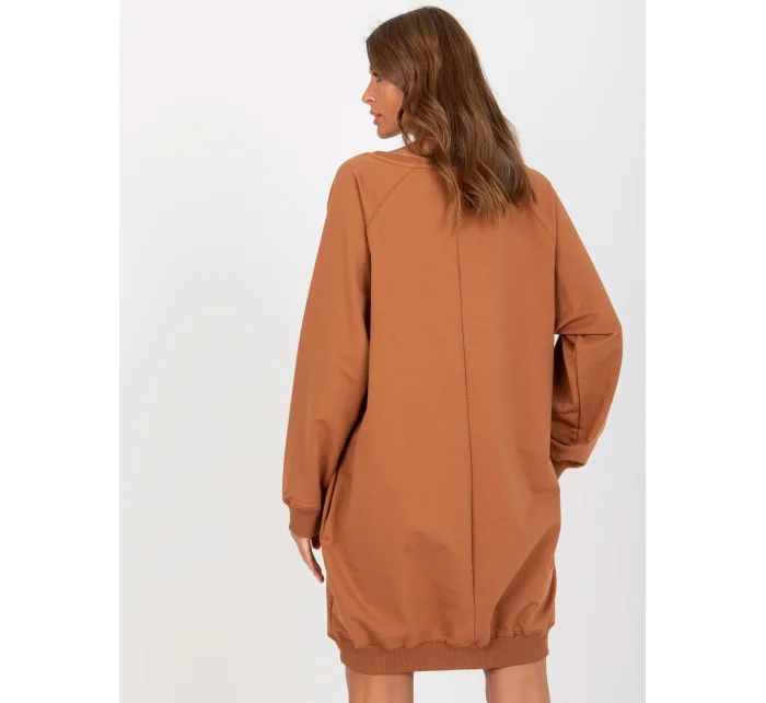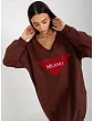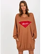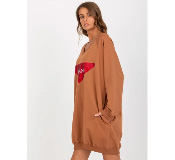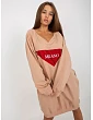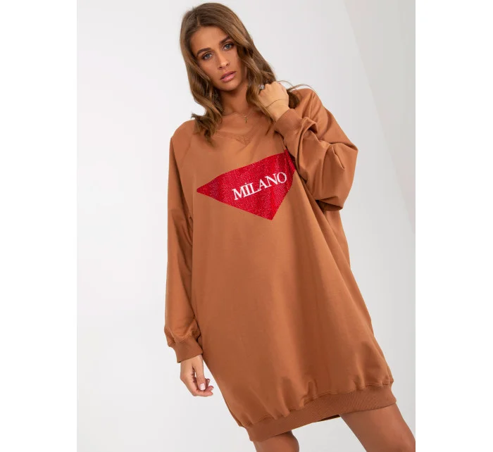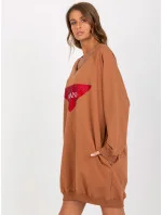 Svetlohnedá dlhá mikina s aplikáciou a nápisom.