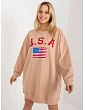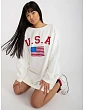 Voľná mikina vo farbe ecru s potlačou a kamienkovou aplikáciou .