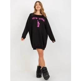 Čierno-ružová dlhá oversize mikina s potlačou .