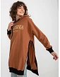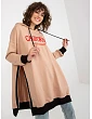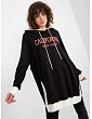 Čierna dlhá oversize mikina s nápisom a kapucňou.