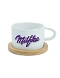 Bílý keramický hrneček s bambusovým podtáckem – Milfka