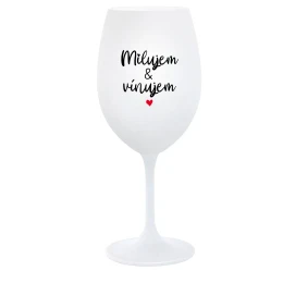 MILUJEM & VÍNUJEM - biely pohár na víno 350 ml