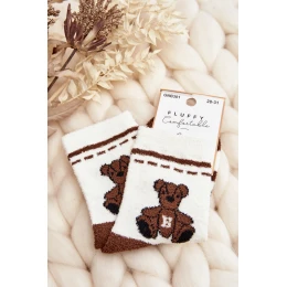 Młodzieżowe Ciepłe Skarpety Z Misiem Biało-Brązowe