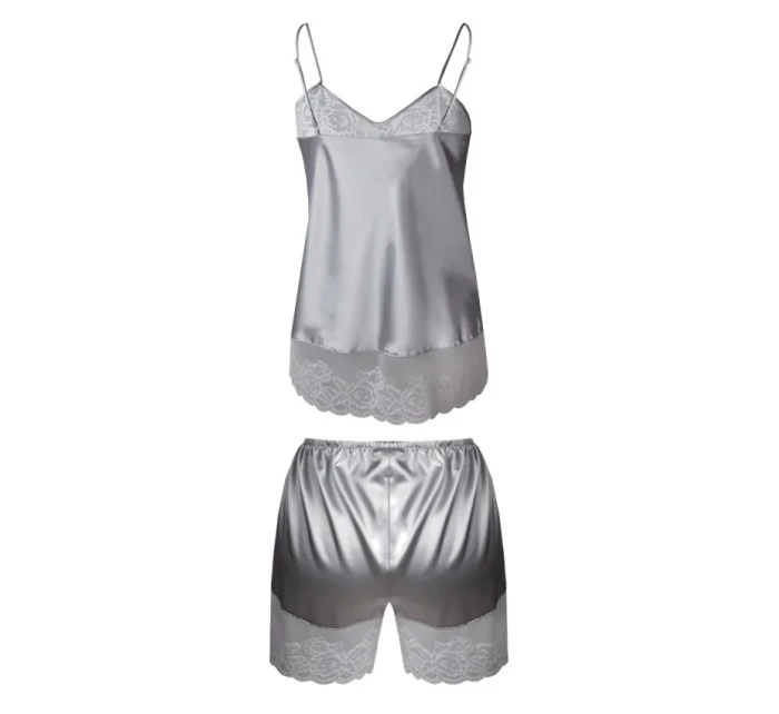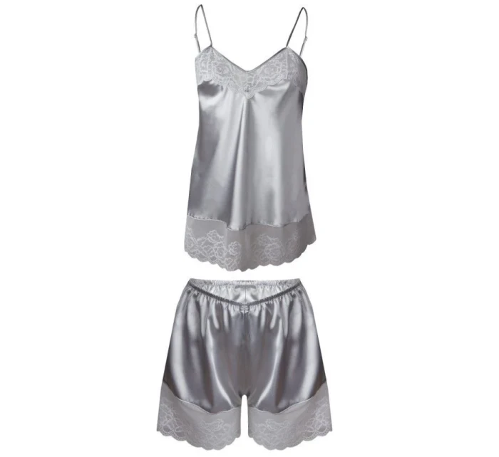 Připravte se na něco výjimečného... Stříbrný, elegantní, hladký satén - výjimečně jemný a příjemný na dotek v kombinaci s bílou, smyslnou krajkou - Madison - novinka od DKaren je souprava, na kterou chceme upozornit. Chcete relaxovat jako bohyně? - klidně sáhněte po takovém sofistikovaném spodním prádle. Halenka má krajkové rukávy a nepříliš velký výstřih, zatímco šortky svádějí krajkou zdobenými stehny. Složení: 100% polyester.