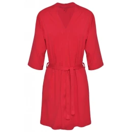 Hladký, tenký župan ušitý z měkké viskózy. Vázání v pase. Rukávy tentokrát sahají až k loktům, takže župan lze použít i pro plážový styling jako přehoz přes plavky. Kapsy na bocích. Krásná barva. Složení: 92 % viskóza, 8 % elastan.