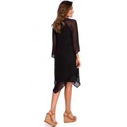 model 18002103 Šifonové šaty s asymetrickým lemem černé - STYLOVE