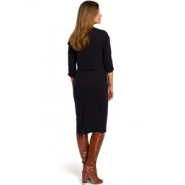 model 18002244 Pletené šaty s výstřihem do V tmavě modré - STYLOVE